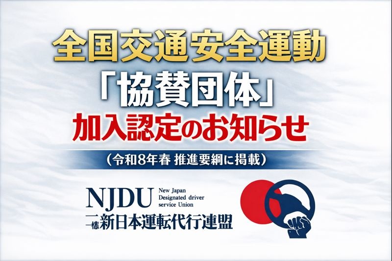 当連盟が協賛団体として位置づけられたことは、運転代行業が担う「飲酒運転根絶」「交通事故防止」「地域の安全・安心に資する移動支援」という社会的役割が、改めて公的に認められたものと受け止めております。同時に、協賛団体として、主催機関・関係機関との連携を密にし、組織の特性に応じた取組を推進するとともに、構成員が率先して模範的な交通行動を示すことが求められています。