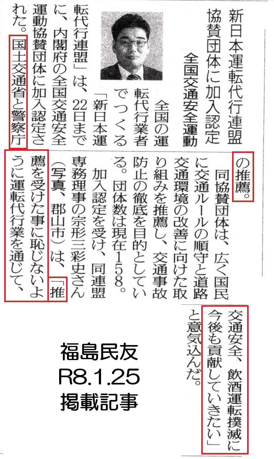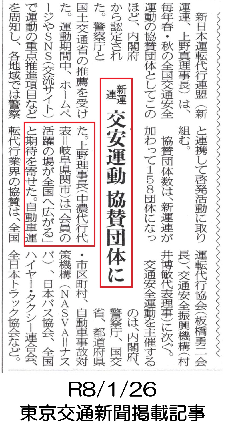 全国交通安全運動協賛団体加入について、#東京交通新聞 #福島民友新聞 に記事が掲載されました。